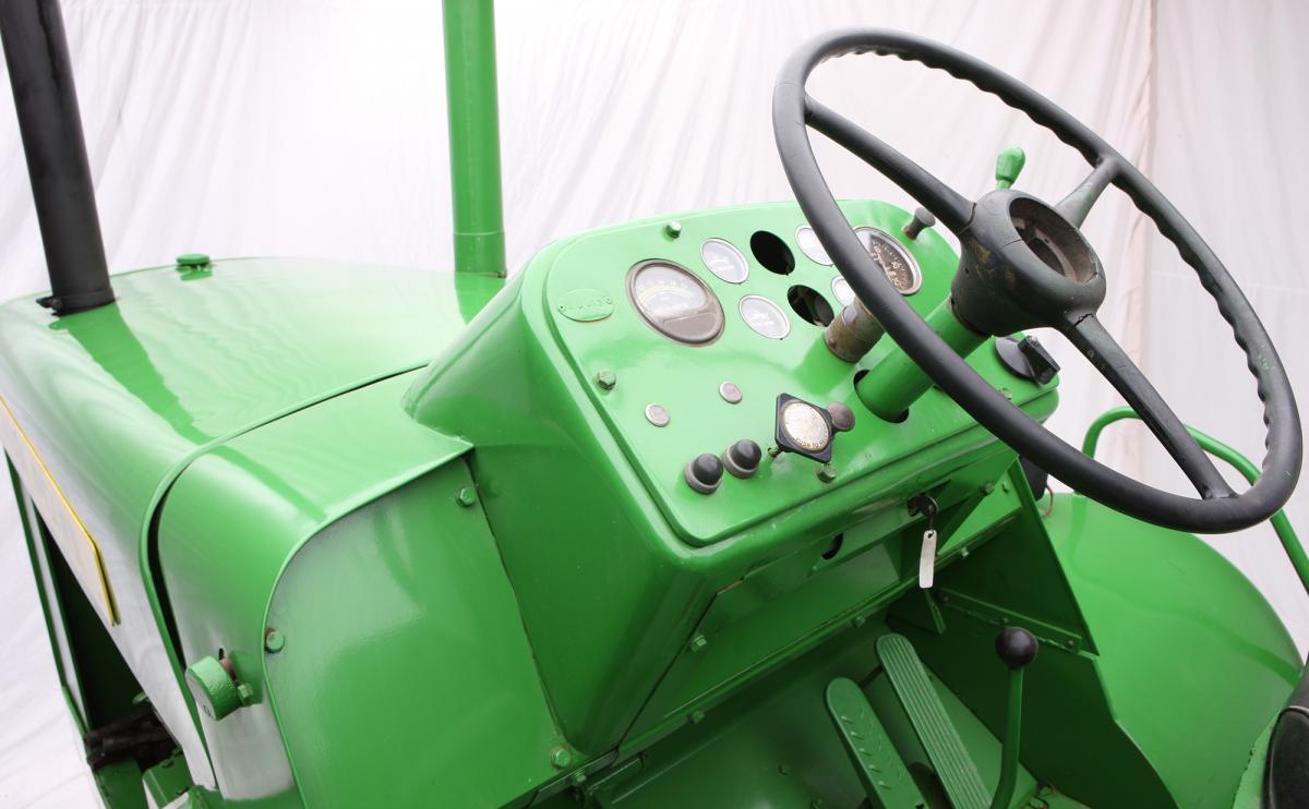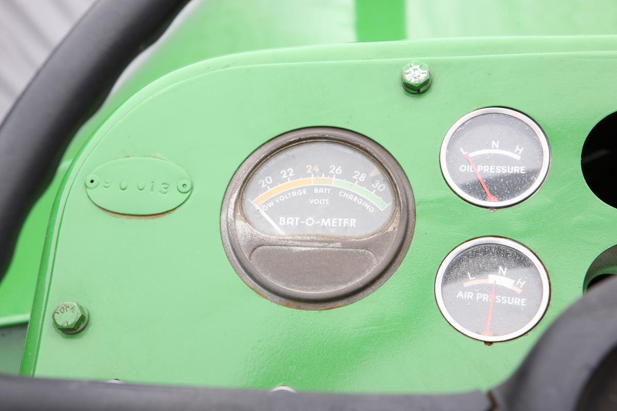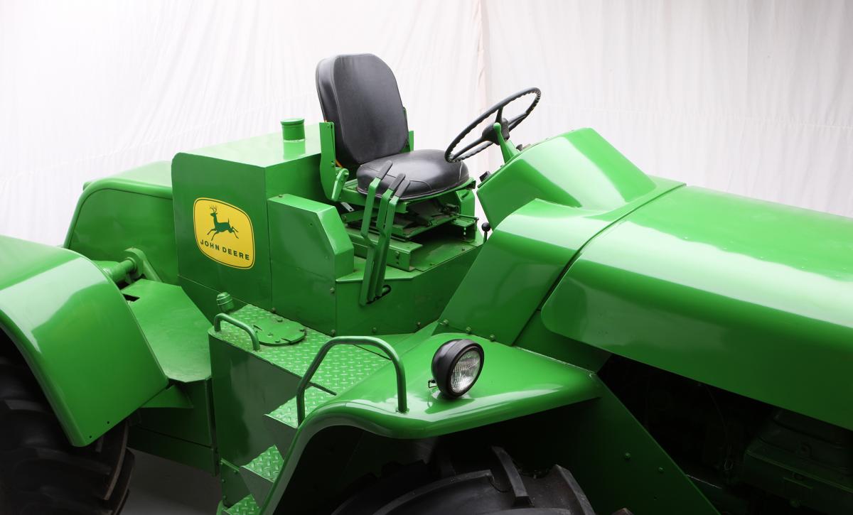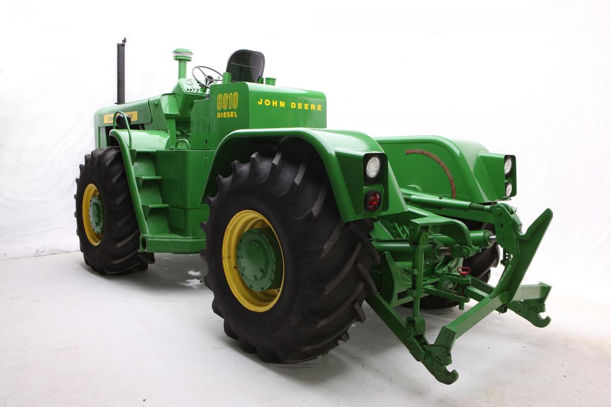 Former Deere engineer Gerald Mortensen identified a number of distinguishing features on this prototype. The hydraulic couplings protruding from the engine bay were used for a dozer-control system built in March 1961. It was the only dozer control system built. The prototype was converted for industrial use in 1961, and later worked at the Waterloo factory. Only 100 production Model 8010s were built, and all 8010s except this example were converted to 8020s by Deere & Company. Lee Klancher